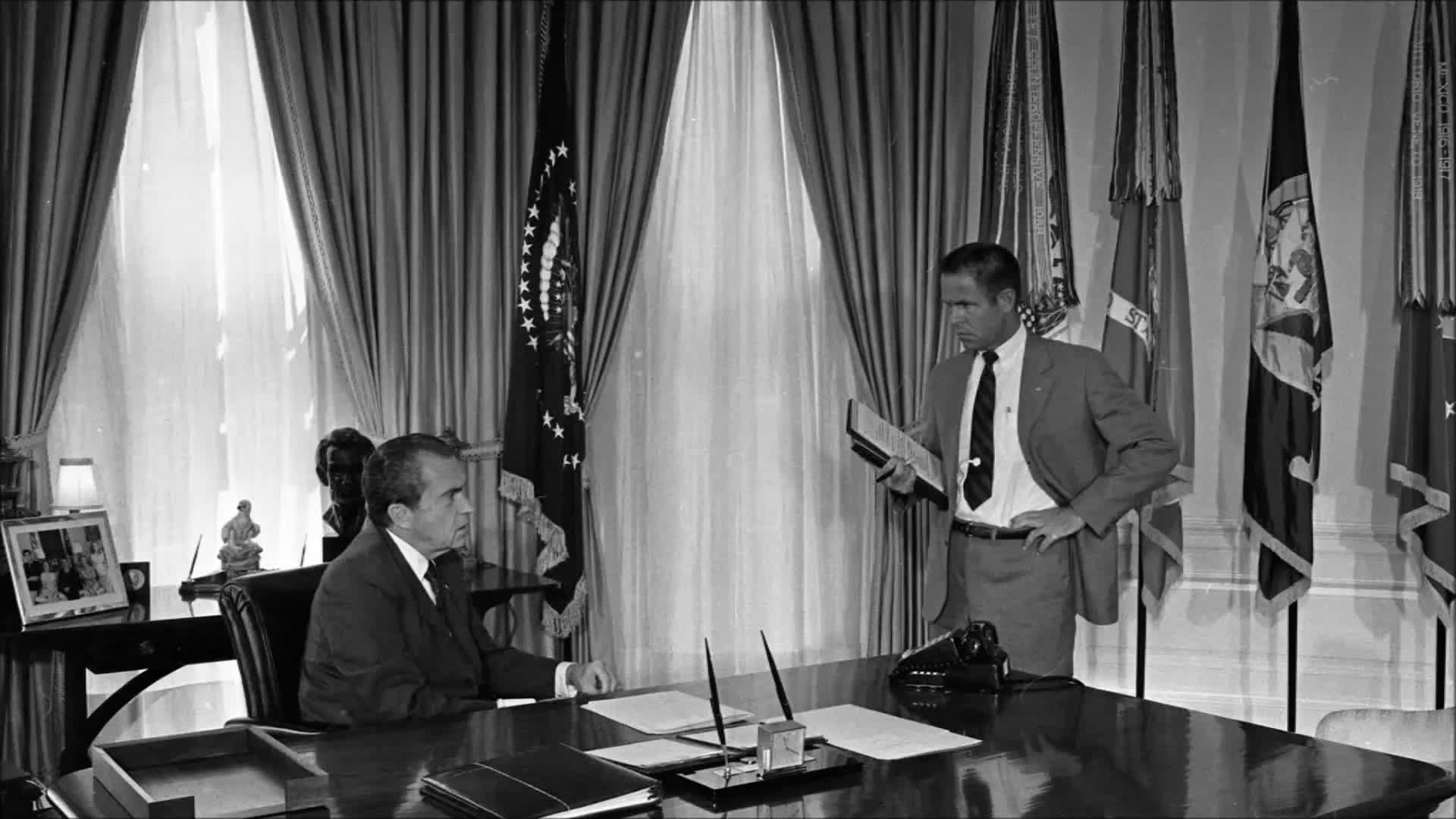 Nixon “cashed his check” back in July-1973 when former White House aide Alexander Butterfield testified on Monday, July 16, 1973 in front of the Senate Select Committee for the Watergate Hearing that – yes – the White House had, in fact, a voice-activated taping system to record conversations involving President Nixon and his subordinates and other officials.