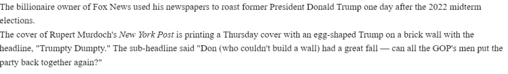 For The “Story” — SEE – THE POST’S 11-9-22 edition – (Rupert Murdoch’s NEW-YORK-POST)