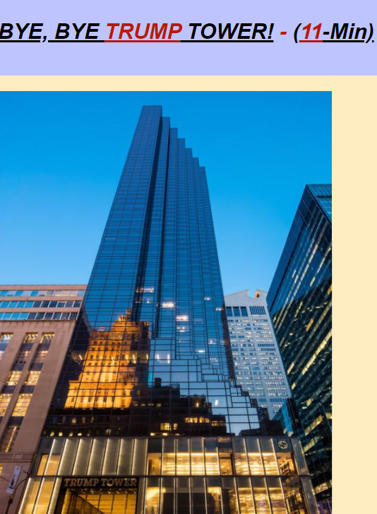 RuFF–RydRR — OUR “617th” PODCAST — “BYE, BYE — TRUMP TOWER!!! —> (“11”-Min.) — (11-1-23)